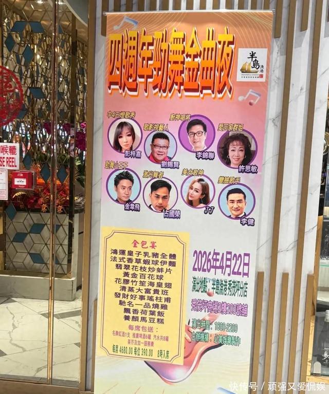 近日有酒楼预告,4月底将邀请刘锡贤、李锦联、《爱回家》“群姐”许思敏、《中年好声音4》五灯歌手彭梓嘉到场唱歌助庆。